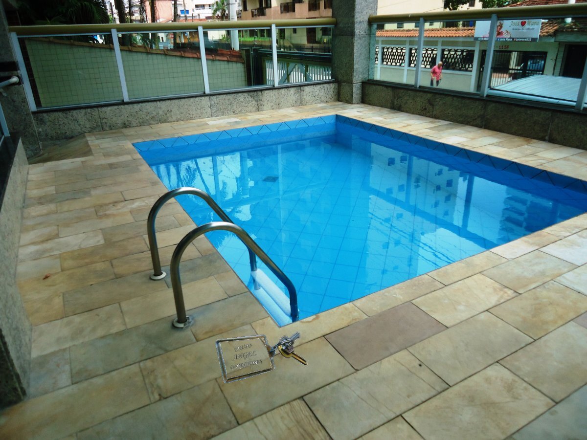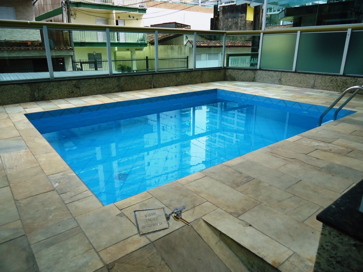 Apartamento em Praia Grande bairro Vila Caiçara contendo 3 suítes, sala, cozinha, banheiro, sacada gourmet com churrasqueira, 2 vagas de garagem, prédio com elevador, piscina, sala de ginastica