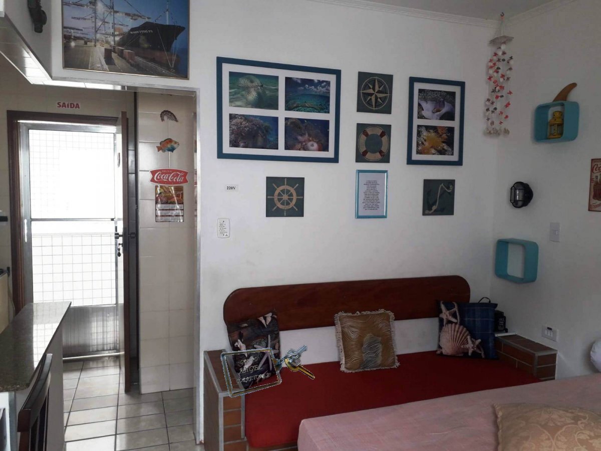 Kitnet predio frente para Mar em Praia Grande bairro Jardim Real, garagem coletiva